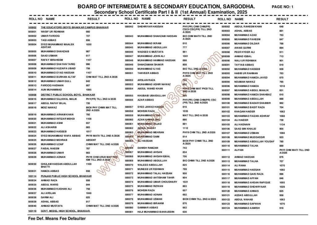 Bise Sargodha 10th Class Result 2025