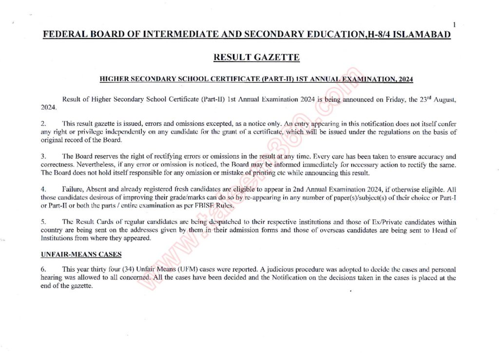FBISE HSSC 12th Class Result 2024