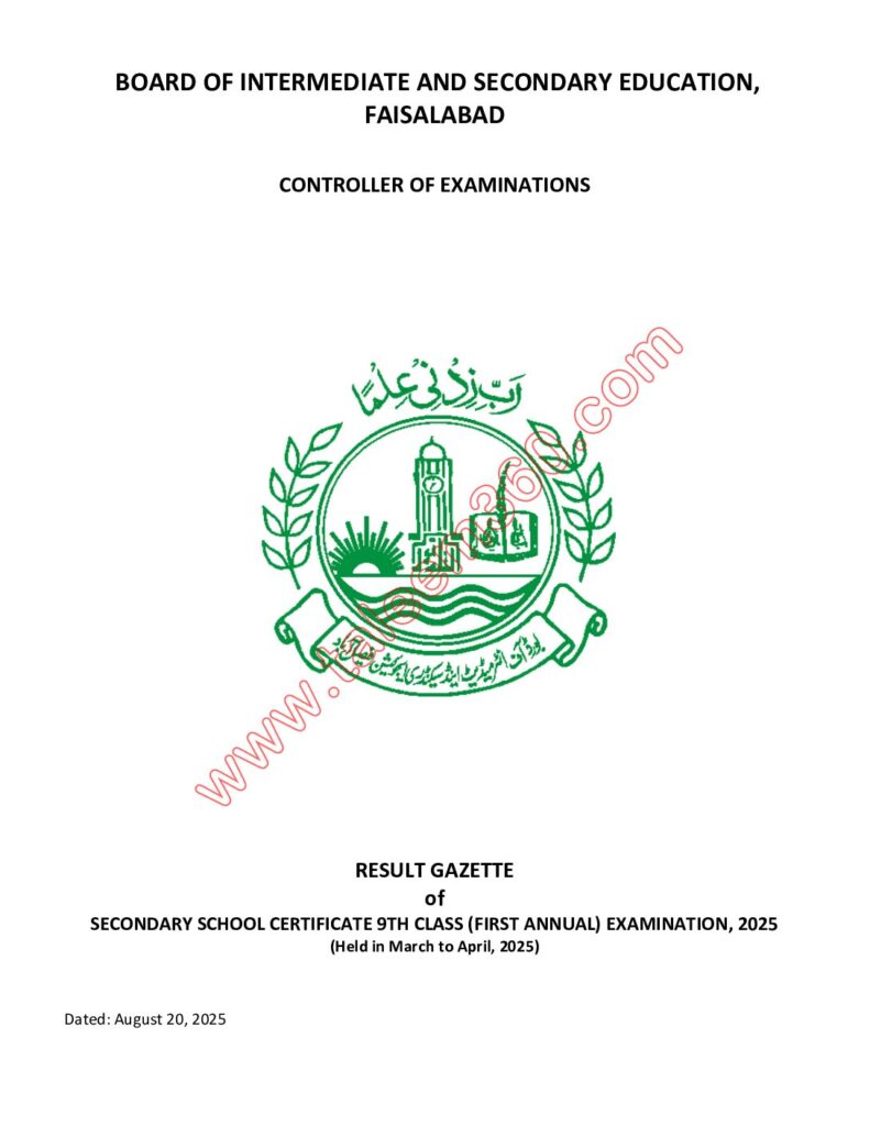 Bise Faisalabad 9th Class Result 2025
